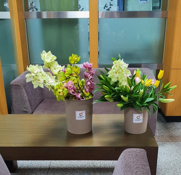 »ç¹«½Ç, ȸÀǽÇ, º¹µµ¿¡ ȺР¶Ç´Â ²É²ÈÀÌ 1°³ ÀÌ»ó ºñÄ¡ÇÏ´Â ¡®»ç¹«½Ç ²É »ýȰÈ(1Table 1Flower)¡¯ ¿îµ¿ ÃßÁø°ú ´õºÒ¾î ¼±ÍÆ÷½Ã ÈÈÑ ³ó°¡°¡ »ý»êÇÑ ¹éÇÕ, ½Éºñµð¿ò, Æ«¸³ µî ²É »çÁֱ⠿À» Áö¼ÓÀûÀ¸·Î ½ÃÇàÇÑ´Ù.