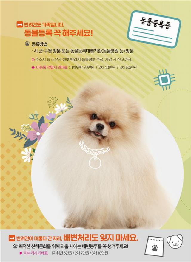 µ¿¹°µî·ÏÀº µî·Ï´ëÇà ¾÷ü¿¡ ¹æ¹®ÇÏ¿© ¿øÇÏ´Â ¹æ½ÄÀ¸·Î µî·Ï °¡´ÉÇϸç, ¸¸¾à µ¿¹°µî·ÏÀ» ÇÏÁö ¾ÊÀº °æ¿ì¿¡´Â µ¿¹°º¸È£¹ý¿¡ µû¶ó 1Â÷ 20¸¸¿ø, 2Â÷ 40¸¸¿ø, 3Â÷ 60¸¸¿øÀÇ °úÅ·ᰡ ºÎ°úµÈ´Ù.