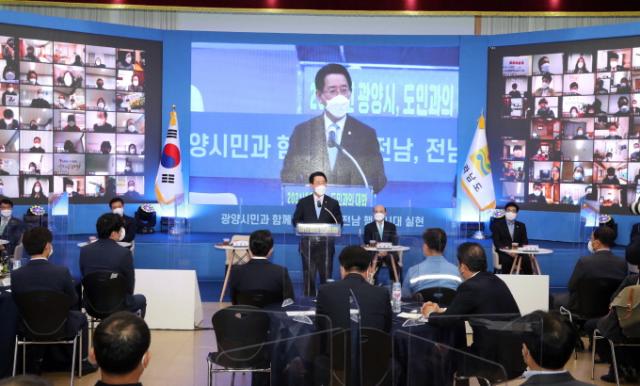 Äڷγª19·Î ÃÖ¼ÒÇÑÀÇ Àοø¸¸ Çà»çÀå¿¡ Âü¼®Çϰí, ÁֹΠ180¸íÀÌ ºñ´ë¸é ¿µ»óÀ» ÅëÇØ Âü¿©ÇÑ À̳¯ ±¤¾ç½Ã µµ¹Î°úÀÇ ´ëÈ´Â ±è±âÈ« Àü³²µµ Á¤Ã¥±âȹ°üÀÇ µµÁ¤º¸°í, ±è°æÈ£ ±¤¾ç½Ã ºÎ½ÃÀåÀÇ ±¤¾ç½Ã Çö¾Èº¸°í, ±è Áö»ç¿Í ÇöÀ塤¿µ»ó Âü¿©ÀÚ °£ ´ëÈ ¼øÀ¸·Î ÁøÇàµÆ´Ù.