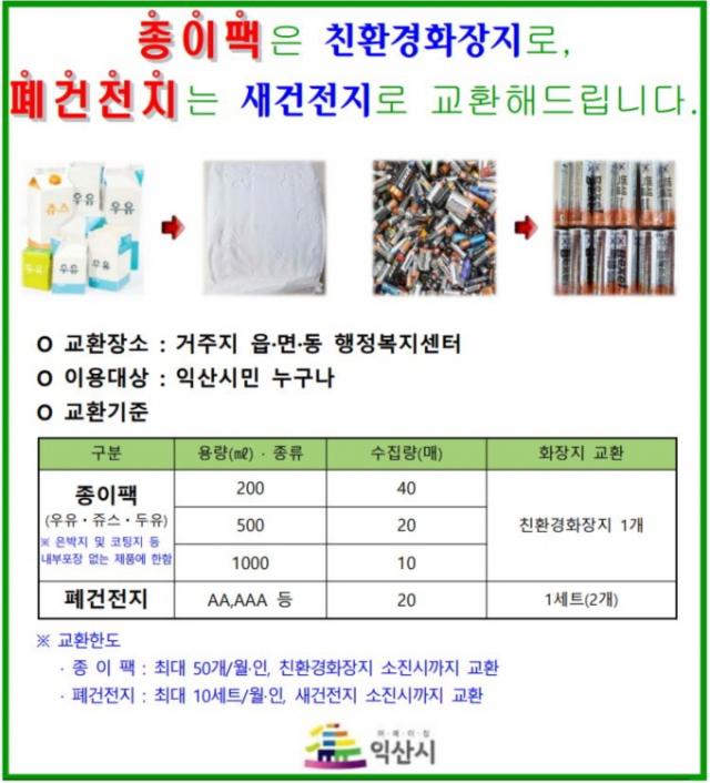 ÀÍ»ê½Ã´Â ¿ìÀ¯, ÁÖ½º, µÎÀ¯ µî Á¾ÀÌÆÑ¿¡ ´ëÇÑ ±³È¯ ±âÁØÀ» ¿ÏÈÇØ ½Ã¹ÎµéÀÇ ÆóÀÚ¿ø ÀçȰ¿ë»ç¾÷¿¡ ´ëÇÑ Âü¿©¸¦ ³ôÀ̱â·Î Çß´Ù.