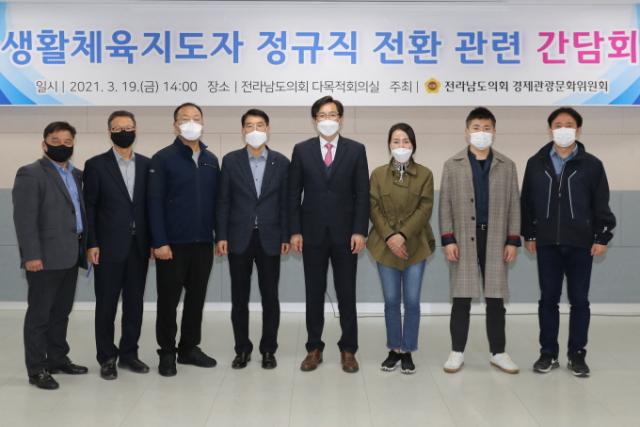 À̳¯ °£´ãȸ´Â Àü¶ó³²µµ üÀ°ÁøÈïóÀå, »ýȰüÀ°ÁöµµÀÚ Àü³²ÁöºÎÀå, »ýȰüÀ°ÁöµµÀÚ Àü±¹ ºÐ°úÀ§¿øÀå, °ø°ø¿¬´ë Á¶Á÷±¹Àå, Àü¶ó³²µµ ½ºÆ÷Ã÷»ê¾÷°úÀåÀ» ºñ·ÔÇÑ °ü°è ºÎ¼ °ø¹«¿ø µîÀÌ Âü¼®ÇØ ¼ö½Ê ³â°£ ÀúÀÓ±Ý µîÀ¸·Î ½Ã´Þ·Á¿Â »ýȰüÀ°ÁöµµÀÚµéÀÇ Á¤±ÔÁ÷ Àüȯ ¹æ¾ÈÀ» ³íÀÇÇϱâ À§ÇØ ¸¶·ÃµÆ´Ù.