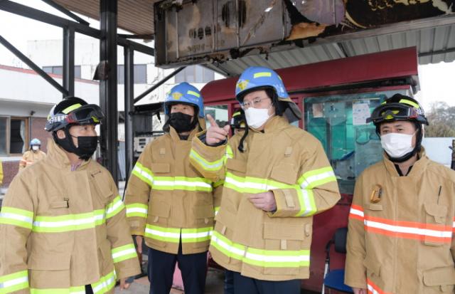 ¶ÇÇÑ, ÇöÀå¿¡¼ ÈÀç ÁøÈ¿¡ ¿©³äÀÌ ¾ø´Â ¼Ò¹æ°ü°ú ±¤Áֽᤱ¤»ê±¸ ¹× °¡½º¾ÈÀü°ø»ç °ü°èÀÚ, ÀÇ¿ë¼Ò¹æ´ë¿ø µîÀ» °Ý·ÁÇß´Ù.