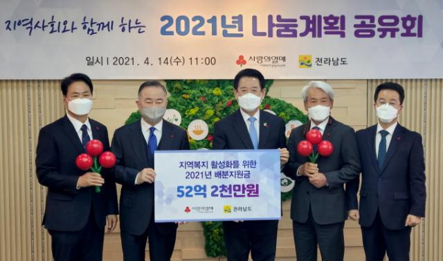 ±è Áö»ç´Â Àü´Þ½Ä¿¡¼ ¡°Àü±¹¿¡¼ º¹Áö ¼ö¿ä°¡ »ó´ëÀûÀ¸·Î ¸¹Àº Àü³²ÀÇ º¹Áö»ç¾÷¿¡ Å« ÈûÀ» º¸ÅÂÁà °¨»çÇÏ´Ù¡±¸ç ¡°¿ÃÇØ ¹èºÐµÈ 52¾ï ¿øÀº µµ¿òÀÇ ¼Õ±æÀÌ ÇÊ¿äÇÑ µµ¹Î¿¡°Ô Å« Èñ¸ÁÀ» ÁÖ´Â »ç¶ûÀÇ ¼±¹°ÀÌ µÉ °Í¡±À̶ó°í ¸»Çß´Ù.