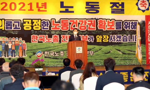 Äڷγª19·Î ÀÎÇØ ´ë³»¿ÜÀûÀ¸·Î ¾î·Á¿î »óȲÀÌÁö¸¸ Àü³²Áö¿ª ³ëµ¿ÀÚµéÀÌ ÇÑÀÚ¸®¿¡ ¸ð¿© ³ëµ¿ÀÇ Âü¶æÀ» ±ú´Ý°í, Âü¿©¿Í Çù·ÂÀ» ¹ÙÅÁÀ¸·Î »ó»ýÀÇ ³ë»ç¹®È Á¤Âø¿¡ ÇÔ²²Çϱâ·Î ¶æÀ» ¸ð¾Ò´Ù.