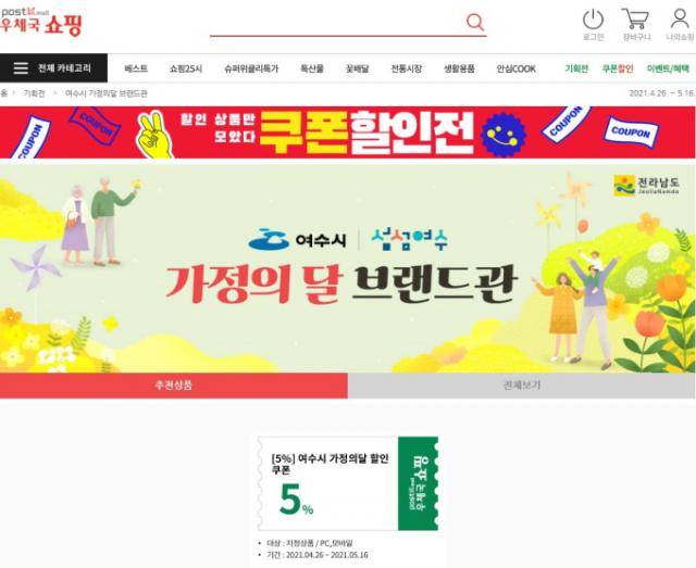 ¿©¼ö½Ã´Â ´ÙÀ½ ´Þ 16ÀϱîÁö ¿ìü±¹¼îÇθô(¿©¼ö½Ã ºê·£µå°ü)¿¡¼ ÆÇ¸ÅÇÏ´Â ¿©¼ö½Ã ³ó¼öƯ»êǰ¿¡ ´ëÇØ 5% ÇÒÀÎÄíÆùÀ» Áö±ÞÇÑ´Ù°í ¹àÇû´Ù.