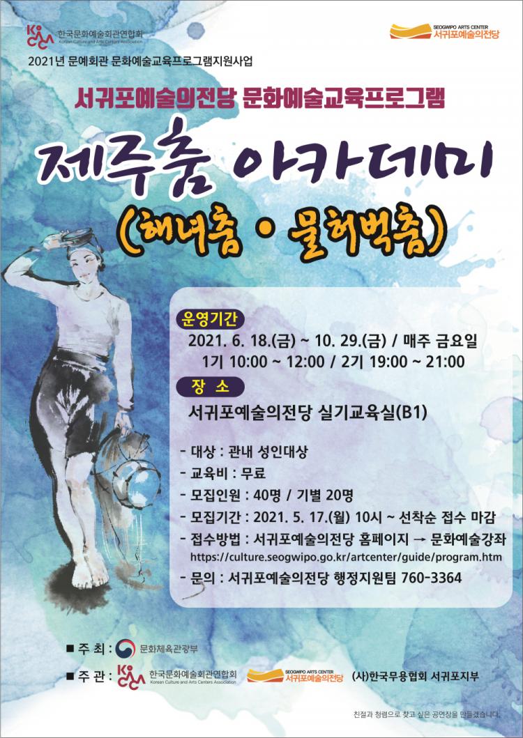 Á¦ÁÖ Ãã ¾ÆÄ«µ¥¹Ì´Â Çѱ¹¹®È¿¹¼úȸ°ü¿¬ÇÕȸ°¡ ÁÖ°üÇÏ´Â 2021 ¹®¿¹È¸°ü ¹®È¿¹¼ú±³À°ÇÁ·Î±×·¥ üÇèÇüÀ¸·Î ¼±Á¤µÈ »ç¾÷ÀÌ´Ù.
