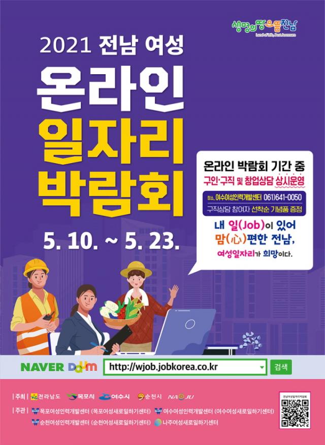¡ã ¿©¼ö½Ã(½ÃÀå ±Ç¿ÀºÀ)°¡ °æ·Â´ÜÀý¿©¼º¿¡°Ô ÀÏÀÚ¸®¸¦ ¿¬°èÇϰí Ãë¾÷°ú â¾÷ Á¤º¸¸¦ Á¦°øÇϱâ À§ÇØ ¿À´Â 10ÀϺÎÅÍ 23ÀϱîÁö ¡®Àü³² ¿©¼º ¿Â¶óÀÎ ÀÏÀÚ¸® ¹Ú¶÷ȸ¡¯¸¦ °³ÃÖÇÑ´Ù.