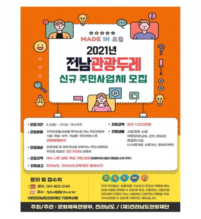 ÇÑÆí, ÀÚ¼¼ÇÑ ³»¿ëÀº Àü³²µµ¿Í Àü³²°ü±¤Àç´Ü ´©¸®Áý¿¡¼ È®ÀÎÇϰí, Âü¿©¸¦ ¹Ù¶ó´Â Áֹλç¾÷ü´Â Àü³²°ü±¤Àç´Ü °ü±¤µÎ·¹Áö¿ªÇù·Â»ç¾÷ ´ã´ç ºÎ¼(061-802-2143)¿¡ ¹®ÀÇÇÏ¸é µÈ´Ù.