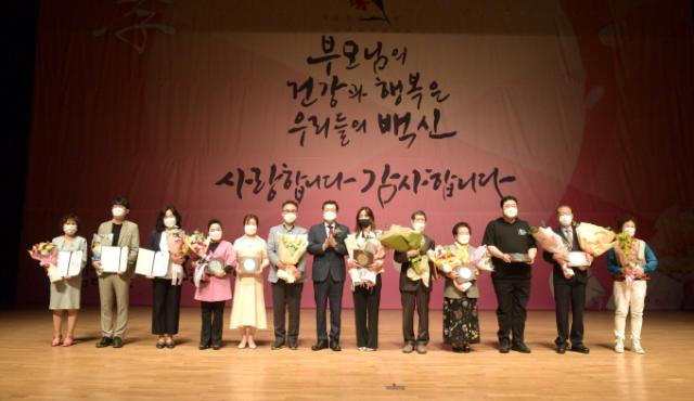 ƯÈ÷, Áßdz°ú ³ëȯÀ¸·Î ´©¿ö°è½Ã´Â °í·ÉÀÇ ºÎ¸ð´ÔÀ» ±ØÁøÇÑ È¿¼ºÀ¸·Î ºÀ¾çÇØ ±Í°¨ÀÌ µÈ ºÏ±¸ ±è¼ø¿Á(61,¿©)¾¾¿Í ±¤»ê±¸ È«¼º¾Ö(56,¿©)¾¾ µî È¿ÇàÀÚ 5¸í, ÀåÇѾî¹öÀÌ 4¸í, ³ëÀκ¹Áö±â¿©´Üü µî ¾î¹öÀ̳¯ °ü·Ã À¯°øÀÚ 15¸í¿¡ Á¤ºÎÆ÷»ó°ú ±¤ÁÖ½ÃÀå ǥâÀ» ½Ã»óÇß´Ù.