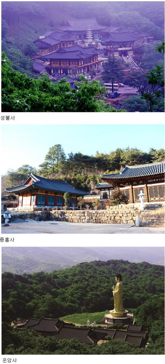 ´ë¿õÀü°ú °üÀ½Àü, ±Ø¶ôÀü, ¿ÀÃþ¼®Å¾, ¹üÁ¾°¢ µîÀÌ ÀÖÀ¸¸ç, ¼ö·ÁÇÑ »ê¼¼¿Í ¾à 2km¿¡ ´ÞÇÏ´Â ±í°í ¸¼Àº ¼ººÒ°è°îÀº ¸¶À½À» Á¤ÈÇØ ÁØ´Ù.