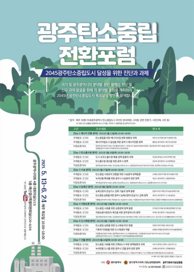 ¿À´Â 24ÀÏ¿¡´Â ¡®2021 P4G ¼¿ï Á¤»óȸÀÇ¡¯¿Í ¿¬°èÇÑ ¡®Áö¹æÁ¤ºÎ ź¼ÒÁ߸³ Ưº°¼¼¼Ç¡¯ Çà»ç¿¡µµ Âü¿©ÇØ 2050 ź¼ÒÁ߸³ ¸ñÇ¥ ´Þ¼ºÀ» À§ÇÑ Á¤ºÎ ¹× ±¹Á¦»çȸ¿ÍÀÇ ¿¬´ë¿Í Çù·ÂÀ» °ÈÇØ ³ª°¥ °èȹÀÌ´Ù. ÇÑÆí, ¼Û¿ë¼ö ±¤Áֽà ±âÈÄȯ°æÁ¤Ã¥°úÀåÀº ¡°Åº¼ÒÁ߸³ÀÇ ¿ø³âÀÎ ¿ÃÇØ ±¤ÁÖ½ÃÀÇ Åº¼ÒÁ߸³ ±âº» ·Îµå¸ÊÀ» ¼ö¸³ÇÏ´Â °ÍÀº ¸Å¿ì Áß¿äÇÑ ÀÏÀÌ´Ù¡±¸ç ¡°ÇàÁ¤ »Ó ¾Æ´Ï¶ó ÀÇȸ, ½Ã¹Î»çȸ, »ê¾÷°è µî ±¤ÁÖ°øµ¿Ã¼ ±¸¼º¿ø Àüü°¡ ź¼ÒÁ߸³À» À§ÇÑ ´Ü±â¡¤Á߱⡤Àå±âÀÇ ¸ñÇ¥¸¦ ÇÔ²² ÇÕÀÇÇÏ°í ¼º°ú¸¦ ÀÌ·ç¾î ³ª°¥ ¼ö ÀÖµµ·Ï ÃÖ¼±À» ´ÙÇϰڴ١±°í ¸»Çß´Ù.