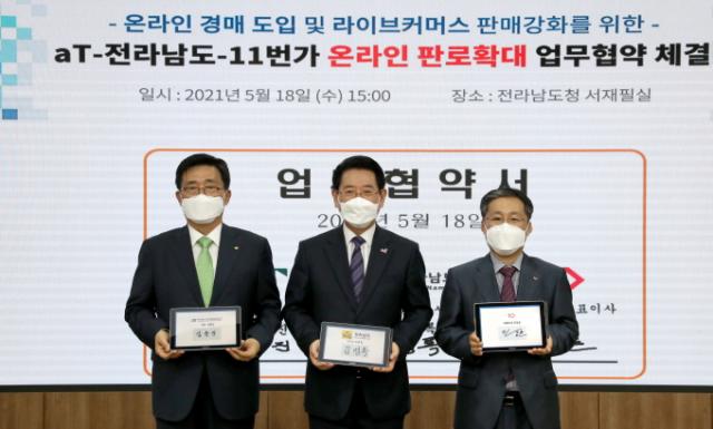 Àü³²µµ´Â 18ÀÏ µµÃ» ¼ÀçÇʽǿ¡¼ Çѱ¹³ó¼ö»ê½ÄǰÀ¯Åë°ø»ç, 11¹ø°¡¿Í ÇÔ²² ½Ç½Ã°£ ¹æ¼ÛÆÇ¸Å(¶óÀ̺ê Ä¿¸Ó½º) ¹× ¿Â¶óÀÎ °æ¸Å »ç¾÷À» Ȱ¼ºÈÇØ Àü³² ¿ì¼ö ³óƯ»ê¹° ÆÇ¸Å¸¦ ÃËÁøÇÏ´Â ¾÷¹«Çù¾àÀ» Çß´Ù.