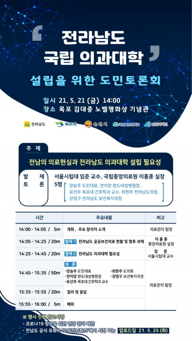 ÇÑÆí, ¡®Àü¶ó³²µµ ±¹¸³ Àǰú´ëÇÐ ¼³¸³À» À§ÇÑ µµ¹ÎÅä·Ðȸ¡¯´Â 2ȸ ÁøÇà ¿¹Á¤À̸ç, 2Â÷ Åä·Ðȸ´Â 6¿ù 4ÀÏ ¼øÃµ ¹®È°Ç°¼¾ÅÍ¿¡¼ °³ÃÖÇÑ´Ù.
