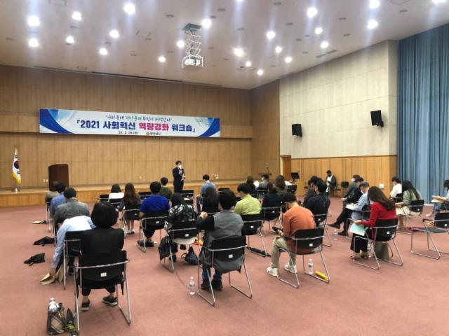 ¿öÅ©¼ó¿¡´Â 2021³â »çȸÇõ½Å °ø¸ð»ç¾÷À» ÃßÁøÇÒ ¹Î°£´Üü ´ëÇ¥¿Í ½Ã±º »çȸÇõ½Å ´ã´ç °ø¹«¿ø µî 40¿© ¸íÀÌ Âü¼®Çß´Ù.