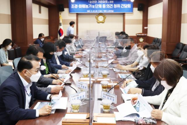 µµ½Ã°Ç¼³À§¿øÈ¸ ¼Ò¼Ó ÀÇ¿øµéÀ» ºñ·ÔÇØ, °ü³» Á¶°æ¡¤ÈÈÑ³ó°¡ ¹× °ü·Ã ´Üü¿Í °ü°è ºÎ¼ °ø¹«¿øµéÀÌ Âü¼®ÇÑ À̳¯ °£´ãȸ¿¡¼´Â ¼øÃµ½Ã Á¤¿ø»ê¾÷°úÀåÀ¸·ÎºÎÅÍ ¼øÃµ¸¸°¡µç¸¶ÄÏ ¿î¿µ °èȹÀ» º¸°í ¹Þ°í ÀǰßÀ» ³ª´©´Â ¼ø¼·Î ÁøÇàµÆ´Ù.