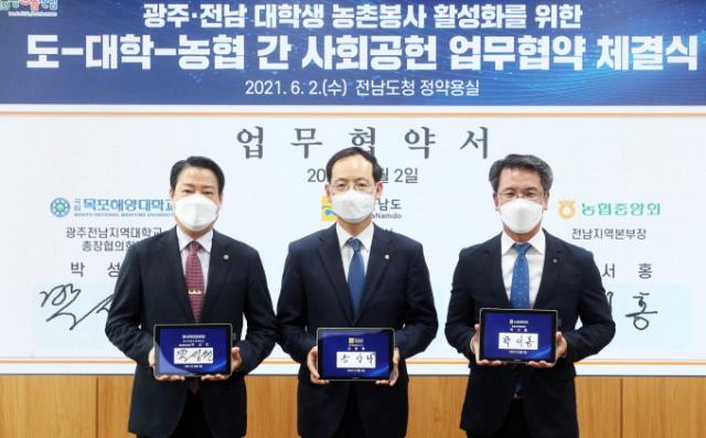 À̳¯ Àü³²µµÃ» Á¤¾à¿ë½Ç¿¡¼ ÀÌ·ïÁø Çù¾à½Ä¿¡´Â ¼Û»ó¶ô Àü³²µµ ÇàÁ¤ºÎÁö»ç, ¹Ú¼ºÇö ±¤ÁÖ․Àü³²Áö¿ª ´ëÇб³ÃÑÀåÇùÀÇȸÀå(¸ñÆ÷ÇØ¾ç´ëÇб³ ÃÑÀå), ¹Ú¼È« ³óÇùÁß¾Óȸ Àü³²Áö¿ªº»ºÎÀå µîÀÌ Âü¼®Çß´Ù.
