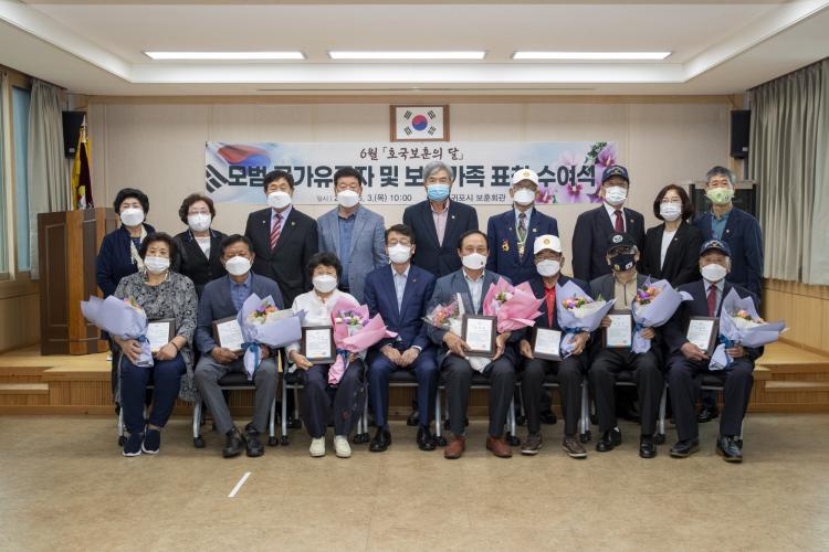 [½Ã»çÁ¾ÇսŹ® = °í¼º¹Î ±âÀÚ] ¼­±ÍÆ÷½Ã(½ÃÀå ±èÅ¿±)´Â 3ÀÏ(¸ñ) ¼­±ÍÆ÷½Ãº¸ÈÆÈ¸°ü¿¡¼­ 6¿ù È£±¹º¸ÈÆÀÇ ´ÞÀ» ¸Â¾Æ ±¹°¡ À¯°øÀÚ¿Í À¯°¡Á·¿¡°Ô ÀÚ±à½É °íÃë¿Í »ç±âÁøÀÛÀ» À§ÇØ Ç¥Ã¢ÆÐ¸¦ ¼ö¿©ÇÏ¿´´Ù. À̹ø ǥâ ´ë»óÀÚ´Â 7°³ º¸ÈÆ´Üü¿¡¼­ ÃßõÇÏ¿© ¼±Á¤µÇ¾úÀ¸¸ç, ¸ð¹ü±¹°¡À¯°øÀÚ 4, ÂüÀüÀ¯°øÀÚ 1, º¸Èư¡Á· 2¸í µî ÃÑ 7¸íÀÌ´Ù. ±èÅ¿± ¼­±ÍÆ÷½ÃÀåÀº ¡°Ç¥Ã¢ ¼ö»óÀÚ¿Í º¸ÈÆ´Üü ȸ¿øºÐµéÀÌ È£±¹¿µ·ÉµéÀÇ ³ÌÀ» ±â¸®°í ±¹°¡ ¾Èº¸ÀÇ ¼ÒÁßÇÔÀ» ±ú¿ìÄ¡´Â Ȱµ¿À» ÆîÄ¡°í °è½Ã´Â °Í¿¡ °¨»çÇÏ´Ù.¡± ¸ç Á¸°æ°ú À§·ÎÀÇ ¸»¾¸À» Àü´ÞÇß´Ù.