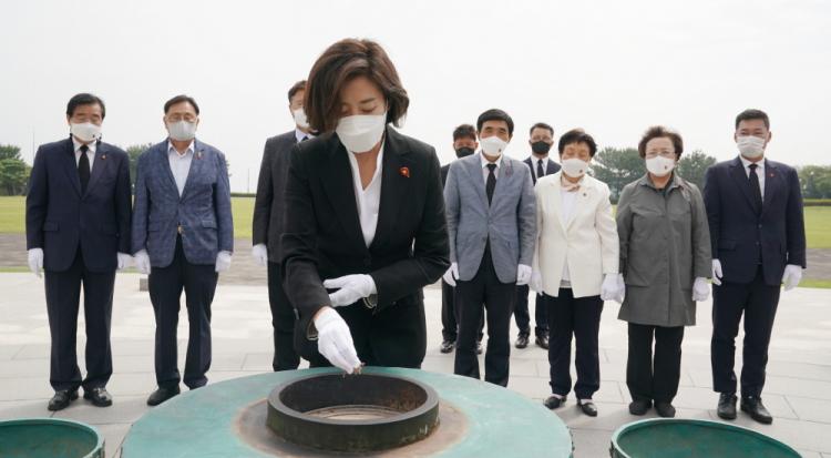 À§·ÉÁ¦´Ü Âü¹è¸¦ ¸¶Ä£ ³ª°æ¿ø È帴 À§ÆÐºÀ¾È½ÇÀ» µÑ·¯º¸°í ¹æ¸í·Ï¿¡ ¡°4‧3Èñ»ýÀÚÀÇ ¾ÆÇÄÀ» À§·ÎÇÕ´Ï´Ù. ÁøÁ¤ÇÑ ÈÇØ¿Í »ó»ýÀ¸·Î ¹Ì·¡·Î °¡´Â ±æ, ÇÔ²² ÇϰڽÀ´Ï´Ù¡±¶ó°í ³²°å´Ù.