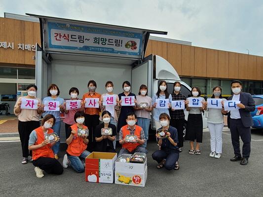 [½Ã»çÁ¾ÇսŹ® = ¿À½ÂÅà ±âÀÚ] ±èÁ¦½ÃÀÚ¿øºÀ»ç¼¾ÅÍ(¼¾ÅÍÀå ÇãÇö±â)´Â Áö³­ 6¿ù 10ÀÏ ±èÁ¦½Ã ¿¹¹æÁ¢Á¾¼¾ÅÍ ¹× º¸°Ç¼Ò, ¼±º°Áø·á¼Ò ±Ù¹«ÀÚ 300¿©¸íÀ» ´ë»óÀ¸·Î °£½ÄÀ» Áö¿øÇÏ´Â ¡¸ ¾È³ç! ÇÔ²²ÇÒ°Ô Äڷγª19 ±Øº¹ ÀÀ¿ø°£½Ä Áö¿ø»ç¾÷¡°°£½Äµå¸²~ Èñ¸Áµå¸²!¡±»ç¾÷À» ÁøÇàÇß´Ù.