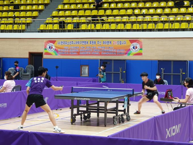 Áö³ 11ÀϺÎÅÍ 20ÀϱîÁö °Áø Á¦1½Ç³»Ã¼À°°ü¿¡¼ °³ÃÖµÈ ¡¸2021 Çѱ¹À¯¼Ò³âÁִϾî¿ÀÇ Ź±¸´ëȸ ¿ÕÁß¿ÕÀü 1Â÷Àü¡¹Àº Çѱ¹À¯¼Ò³âÁִϾ¸¿¬¸Í°ú °Áø±ºÅ¹±¸Çùȸ°¡ ÁÖÃÖ¡¤ÁÖ°üÇÏ´Â ´ëȸ·Î¼ ¿©ÀÚºÎ, ³²ÀںηΠ³ª´µ¾î ÁøÇàµÇ¾úÀ¸¸ç 360¿© ¸íÀÌ Âü°¡ÇØ ¿¶í °æÀï ¼Ó¿¡¼ ±×µ¿¾È °¥°í´ÛÀº ½Ç·ÂÀ» »Ë³Â´Ù. ´ëȸ ¸¶Áö¸· ³¯¿¡´Â ±¹°¡´ëÇ¥ Ãâ½Å ÁÖ¼¼Çõ(Çѱ¹¸¶»çȸ) ¼±¼ö°¡ À¯¼Ò³â ¼±¼öµé°ú ½Ã¹ü°æ±â¸¦ ÅëÇØ °¢Á¾ ±â¼ú µîÀ» ÁöµµÇÏ´Â À̺¥Æ®¸¦ °®±âµµ Çß´Ù.