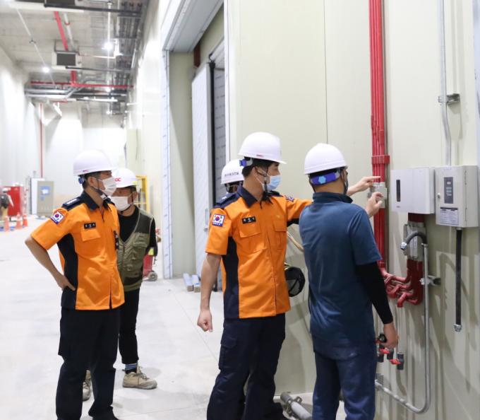 ÃÖ¹Îö º»ºÎÀåÀº °ø»çÇöÀå Àӽüҹæ½Ã¼³ ¼³Ä¡ÇöȲ ¹× ¹°·ùâ°í ³» ¼Ò¹æ°ø»ç ÁøÇà»óȲ µî¿¡ ´ëÇØ °ü°èÀÚÀÇ ¼³¸íÀ» µè°í ÇöÀå »óȲÀ» Á÷Á¢ È®ÀÎÇØ ÈÀçÀ§Çè ¿ä¼Ò ¹× ´ëÀÀü°è¸¦ Á¡°ËÇß´Ù.