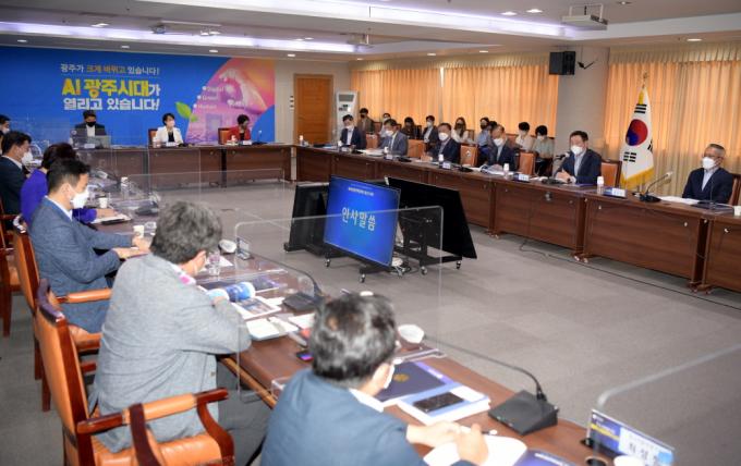 ±¤Áֽô 24ÀÏ ¿ÀÀü ½Ãû ÁßȸÀǽǿ¡¼ À̿뼷 ½ÃÀå°ú ¹ÚÀ翵 ±¤ÁÖÀü³²¿¬±¸¿øÀå, ±è¼±¹Î ±¤ÁÖÅ×Å©³ëÆÄÅ© ¿øÀå µî 11´ë ´ëÇ¥»ê¾÷ ºÐ¾ßº° Àü¹®°¡°¡ Âü¼®ÇÑ °¡¿îµ¥ ¹Ì·¡»ê¾÷Àü·«À§¿øÈ¸ ȸÀǸ¦ °³ÃÖÇß´Ù.