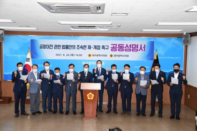 À̹ø ¼º¸í¼´Â ±×°£ ±¤ÁÖ½Ã¿Í ´ë±¸½Ã°¡ ±º°øÇ×À» °âÇÏ´Â ±âÁ¸ ¹Î°£ °øÇ×À» Ÿ Áö¿ªÀ¸·Î È®Àå ÀÌÀüÇÏ´Â »ç¾÷ÃßÁø ÀÏȯÀ¸·Î ¡¸±º°øÇ×ÀÌÀü Ưº°¹ý °³Á¤¡¹, ¡¸´ë±¸°æºÏ½Å°øÇ× Æ¯º°¹ý Á¦Á¤¡¹À» Ã˱¸ÇÏ¿´Áö¸¸, Áö³ 2¿ù Àӽñ¹È¸¿¡¼ »óÀÓÀ§¿øÈ¸ ¹®ÅÎÁ¶Â÷ ³ÑÁö ¸øÇÏ´Â µî ¿©ÀüÈ÷ ÁöÁöºÎÁøÇÑ »óȲ¿¡¼ Ÿ°³Ã¥À» ¸¶·ÃÇϱâ À§ÇÔÀÌ´Ù.