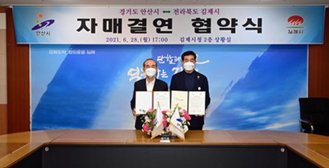 [½Ã»çÁ¾ÇսŹ® = ¿À½ÂÅà ±âÀÚ] ±èÁ¦½Ã(½ÃÀå ¹ÚÁعè)¿Í °æ±â ¾È»ê½Ã(½ÃÀå À±È­¼·)´Â Áö³­ 6¿ù28ÀÏ ÀڸŰῬ Çù¾àÀ» ü°áÇÏ°í µÎ µµ½ÃÀÇ °øµ¿¹ø¿µ°ú »óÈ£±³·ù¸¦ ÅëÇÑ »ó»ý¹ßÀüÀ» À§ÇØ Çù·ÂÇϱâ·Î ÇÏ¿´´Ù.