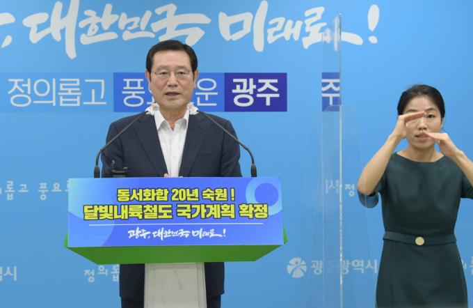 À̿뼷 ±¤ÁÖ±¤¿ª½ÃÀåÀº ¡°´Þºûµ¿¸Í ¿ª»ç»ó °¡Àå Å« »ê¸ÆÀ» ³Ñ¾ú´Ù. ´Þºû³»·úöµµ°¡ ±¹°¡°èȹ¿¡ ¹Ý¿µµÉ ¼ö ÀÖµµ·Ï ÈûÀ» ¸ð¾ÆÁֽб¤Áֽùΰú ¿µÈ£¡¤³² ½Ã¡¤µµ¹Î, Á¤ºÎ °ü°èÀÚ¿¡°Ôµµ ±íÀº °¨»ç¸¦ µå¸°´Ù¡±¸é¼ ¡°´Þºû³»·úöµµ°¡ µ¿¼ÈÇÕ°ú ±¹°¡±ÕÇü¹ßÀü¿¡ ±â¿©ÇÏ´Â ¿ª»çÀûÀÎ ÇÁ·ÎÁ§Æ®°¡ µÇµµ·Ï »ç¾÷ÀÇ Á¶±â Âø¼ö¸¦ À§ÇØ ´Ù½Ã ¶Ù°Ú´Ù¡±°í ¹àÇû´Ù.