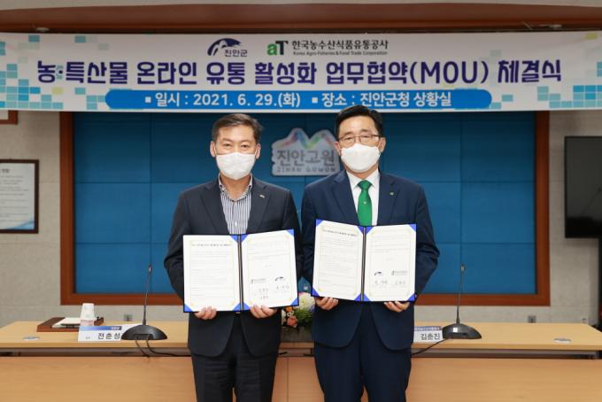 ÀüÃἺ Áø¾È±º¼ö, ±èÃáÁø aTÇѱ¹³ó¼ö»ê½ÄǰÀ¯Åë°ø»ç »çÀå, ¾ç ±â°ü °ü°èÀÚµéÀº Áö³´Þ 29ÀÏ ¿ÀÈÄ 6½Ã ±ºÃ» »óȲ½Ç¿¡¼ Áø¾È±º ³óƯ»ê¹° ¿Â¶óÀÎ À¯Åë Ȱ¼ºÈ¸¦ À§ÇÑ ¾÷¹«Çù¾àÀ» ü°áÇß´Ù.