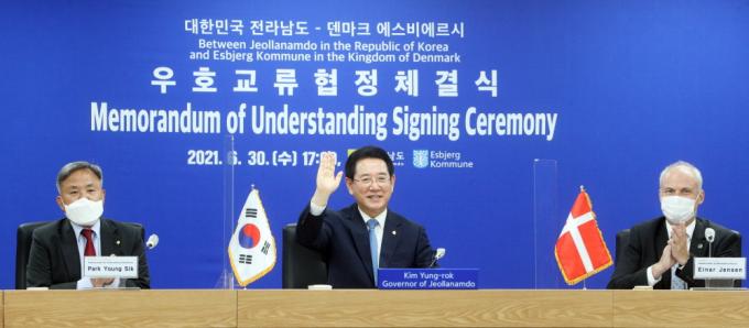 À̳¯ È»óÀ¸·Î ÁøÇàÇÑ ÇùÁ¤½Ä¿¡´Â ±è¿µ·Ï Àü³²µµÁö»ç¿Í ¿¹½ºÆÛ ÇÁ·Î½ºÆ® ¶ó½º¹«¼¾ ¿¡½ººñ¿¡¸£½ÃÀåÀÌ Âü¼®Çß´Ù. À̵éÀº ÇØ»ódz·Â µî ½ÅÀç»ý¿¡³ÊÁö¿Í ±âÈĺ¯È ´ëÀÀ¿¡ ÁßÁ¡À» µÎ°í ¿ìÈ£±³·ù¸¦ À̾±â·Î ¶æÀ» ¸ð¾Ò´Ù.