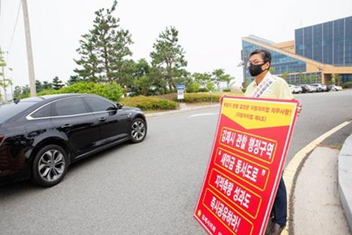 ±èÁ¦½ÃÀÇȸ ÀÇ¿øµé, »õ¸¸±Ý°³¹ßû ¾Õ 1ÀÎ ½ÃÀ§ µ¹ÀÔ