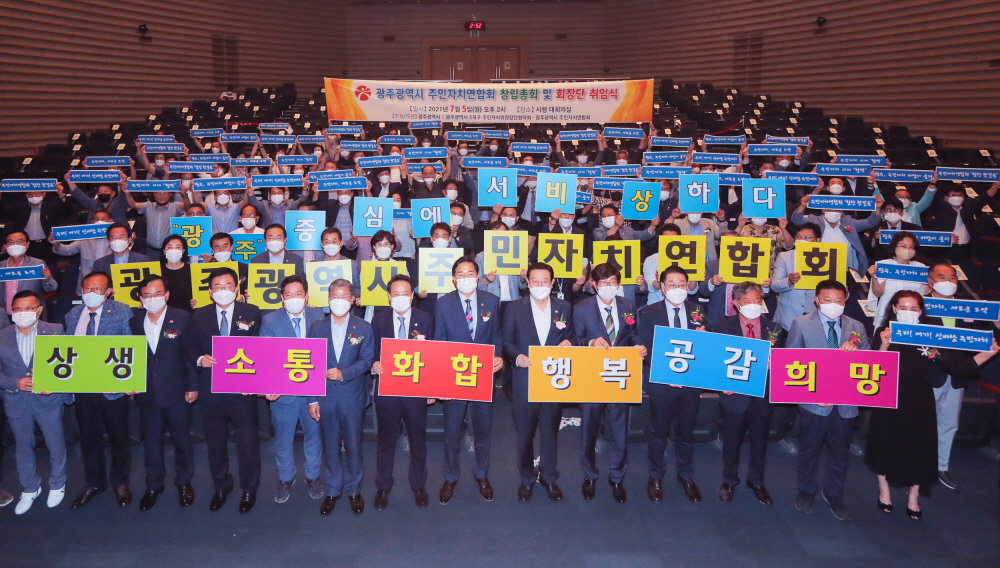 ±¤ÁÖ±¤¿ª½Ã ÁÖ¹ÎÀÚÄ¡¿¬ÇÕȸ´Â 5ÀÏ ¿ÀÈÄ ±¤ÁÖ½Ãû ´ëȸÀǽǿ¡¼ À̿뼷 ±¤ÁÖ½ÃÀå, ±è¿ëÁý ½ÃÀÇȸ ÀÇÀå, ±¤ÁÖ½ÃÁÖ¹ÎÀÚÄ¡¿¬ÇÕȸ ÀÓ¿ø, °ü³» 96°³µ¿ ÁÖ¹ÎÀÚġȸÀå ¹× ÁÖ¹ÎÀÚÄ¡À§¿øÀå µî 100¿©¸íÀÌ Âü¼®ÇÑ °¡¿îµ¥ Ãâ¹ü½ÄÀ» °³ÃÖÇß´Ù.
