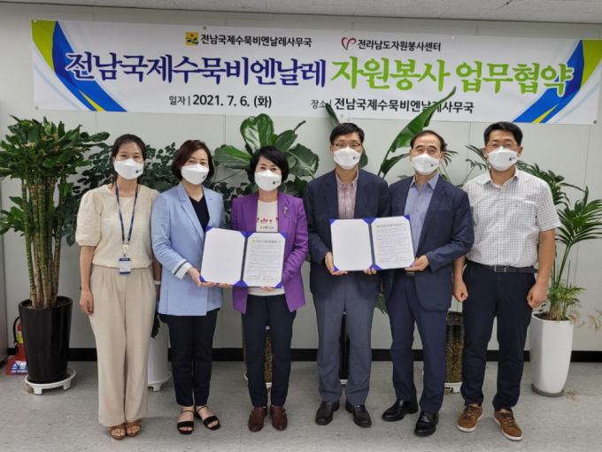 ÇÑÆí, ÀÌõ¿µ »ç¹«±¹ÀåÀº ¡°Àü³²±¹Á¦¼ö¹¬ºñ¿£³¯·¹ÀÇ ¼º°øÀû Çà»ç¸¦ À§Çؼ´Â ÀÚ¿øºÀ»ç Ȱµ¿ÀÌ ÇʼöÀû¡±À̶ó¸ç ¡°µÎ ±â°ü °£ Çù·ÂÀ» ÅëÇØ ºñ¿£³¯·¹°¡ Äڷγª¿¡ ÁöÄ£ ±¹¹Î¿¡°Ô µû¶æÇÑ À§·Î¿Í Èú¸µÀÇ ÀåÀÌ µÇ±æ ±â´ëÇÑ´Ù¡±°í ¸»Çß´Ù.