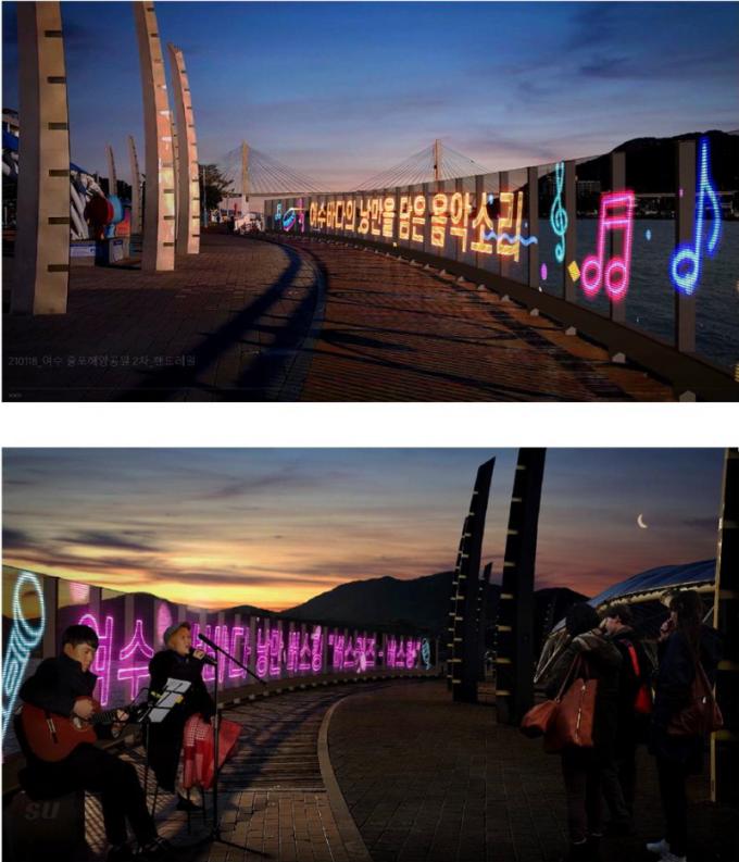 ¿©¼ö½Ã(½ÃÀå ±Ç¿ÀºÀ)¿¡ µû¸£¸é ÇØ¾ç°ø¿ø ¹ãºû´©¸® ¾Õ¿¡ ¹Ìµð¾îÆÄ»çµå¸¦ ¼³Ä¡ÇÏ°í ¿À´Â 9ÀÏ Àϸô ÀÌÈÄ Ã¹ ¿î¿µÇÑ´Ù°í ¹àÇû´Ù. ¹Ìµð¾îÆÄ»çµå Åõ¸íÇÑ À¯¸®·Î µÈ ±¸Á¶¹° ¿Ü¸é¿¡ LED Á¶¸íÀ» ºñÃç ¿µ»ó°ú »ç¿îµå¸¦ °¡¹ÌÇÑ »õ·Î¿î µðÁöÅÐ ¸Å°³ ±â¹ýÀÌ´Ù.