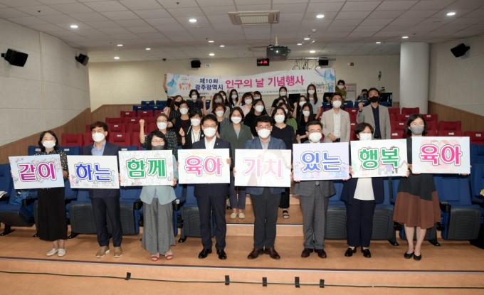 [½Ã»çÁ¾ÇսŹ® = ¿À½ÂÅà ±âÀÚ] ±¤ÁÖ±¤¿ª½Ã´Â 8ÀÏ Àα¸¹®Á¦¿¡ ´ëÇÑ °ü½ÉÀ» ³ôÀ̰í Ãâ»ê Ä£ÈÀû »çȸºÐÀ§±â È®»ê µî Àνݳ¼±°ú Àα¸ÀÇ ³¯À» ³Î¸® ¾Ë¸®±â À§ÇØ 8ÀÏ ½Ãû ¹«µîȦ¿¡¼ Àα¸º¸°Çº¹ÁöÇùȸ ±¤ÁÖÀü³²Áöȸ¿Í ÇÔ²² ¡®Á¦10ȸ Àα¸ÀÇ ³¯ ±â³ä½Ä¡¯À» °³ÃÖÇß´Ù.