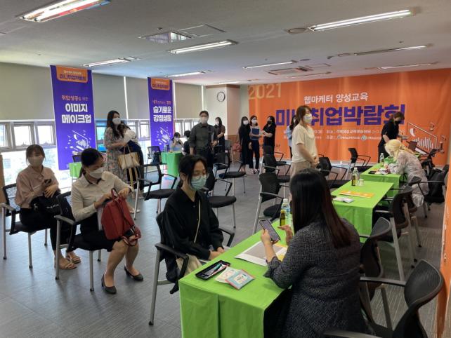 Ãë¾÷¹Ú¶÷ȸ¿¡´Â ±âȹ¡¤È«º¸ÇöÀå¿¡¼ ÇÊ¿ä·Î ÇÏ´Â Àü¹® ¿©¼º ÀηÂ(ÀÎÅÍ³ÝÆíÁý»ç¹«¿ø, »çȸ°ü°è¸ÁȰ¿ë ±âȹȫº¸»ç¹«¿ø µî) ä¿ëÀ» À§ÇØ µµ³» ¿©¼ºÄ£È ±â°üÀÎ ¼öµðÀÚÀÎ, ³Ý½ÃƼÇùµ¿Á¶ÇÕ, ¾¾¾ØÇÇÇÃ, ¢ßÁö¼¼ÀÎ_¶ó¸¶´ÙÀüÁÖÈ£ÅÚ µî 4°³ ±â¾÷ÀÌ Âü¿©Çß´Ù. ƯÈ÷, À̹ø ¹Ú¶÷ȸ´Â Áö³ 4¿ù 13ÀÏ(È) °³°ÇÑ ¡®À¥¸¶ÄÉÅÍ(ÀüÀÚ»ó°Å·¡°ü¸®ÀÚ) ¾ç¼º±³À°¡¯¼ö·áÀÚµéÀÌ Á÷¾÷±³À°ÈÆ·Ã ¼ö·á¿Í µ¿½Ã¿¡ Ãë¾÷±âȸ¸¦ Á¦°ø¹Þ¾Æ ±³À°»ýµéÀÇ Å« È£ÀÀÀ» ¾ò¾ú´Ù.