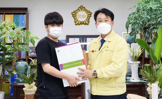 ¹Ý°¡¿î ¼Ò½ÄÀ» Á¢ÇÑ ÇãÀ¯ÀÎ ¼øÃµ½ÃÀÇÀåÀº Áö³ 15ÀÏ ÀÓÁø¿í ±â»ç¿Í ±×ÀÇ ºÎ¸ð´ÔÀ» ÀÇȸ·Î ÃÊÃ»ÇØ, °Ý·ÁǰÀ» Àü´ÞÇϰí ÃàÇÏ¿Í ´çºÎÀÇ ¸»À» °Ç³Þ´Ù.