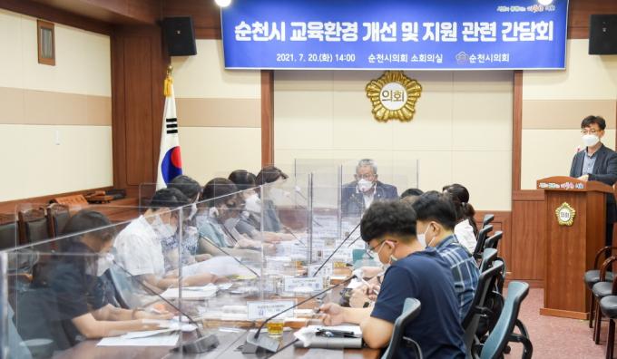 À̳¯ °£´ãȸ¿¡´Â ¹®È°æÁ¦À§¿øÈ¸ ¼Ò¼Ó ÀÇ¿øµéÀ» ºñ·ÔÇØ, Ç®»Ñ¸®±³À°Áö¿ø¼¾ÅÍÀå, Çб³¹Ûû¼Ò³âÁö¿ø¼¾ÅÍÀå, ¼øÃµ±³À°Áö¿øÃ» ¹× ¼øÃµ½Ã Æò»ý±³À°°ú Á÷¿øµéÀÌ Âü¼®ÇØ, Á¶·Ê °³Á¤¾È ¹ßÀǸ¦ Áغñ ÁßÀÎ ¹ÚÇýÁ¤ ÀÇ¿øÀ¸·ÎºÎÅÍ Á¶·Ê °³Á¤ÀÇ ÃëÁö¿Í ³»¿ëÀ» µè°í ÀǰßÀ» ³ª´³´Ù.