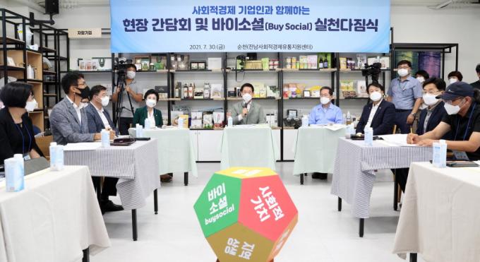 ÀÌ ÀÚ¸®¿¡¼ ±è Áö»ç´Â ¡°»çȸÀû±â¾÷Àº Áö¼ÓÇØ¼ Çõ½ÅÇϰí, Á¦Ç°ÀÇ ÁúÀ» ³ô¿© °æÀï·ÂÀ» °ÈÇØ¾ß ÇÑ´Ù¡±¸ç ¡°Àü³²µµ´Â ¿Â¶óÀÎ À¯Åë¸Á È®´ë¿Í ¹ÙÀÌ ¼Ò¼È È®»êÀ» À§ÇØ Àû±Ø ³ë·ÂÇϰí, »çȸÀû°æÁ¦ »ýÅÂ°è ±¸ÃàÀ» À§ÇØ ¾ÕÀå¼°Ú´Ù¡±°í ¾à¼ÓÇß´Ù.