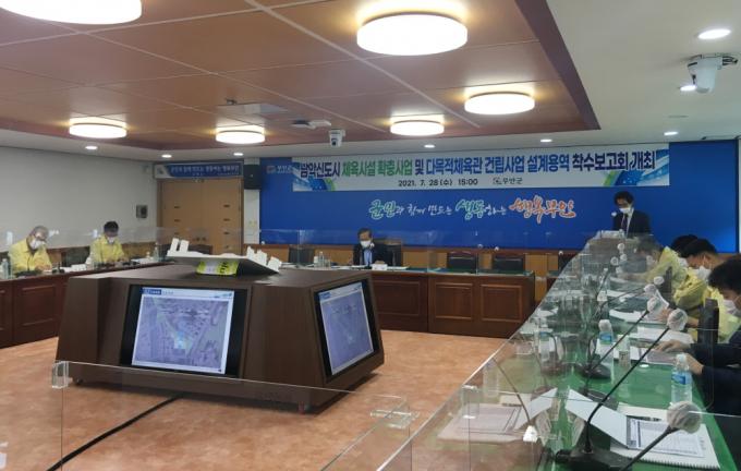 À̳¯ º¸°íȸ´Â ¼À̳² ºÎ±º¼ö, ±º üÀ°È¸ »ç¹«±¹Àå, °ü°è °ø¹«¿ø, ¼³°è¿ë¿ª»ç °ü°èÀÚ µî 13¸íÀÌ Âü¼®ÇÑ °¡¿îµ¥ ¢ß±æ°ÇÃà»ç»ç¹«¼ÒÀÇ ³²¾Ç½Åµµ½Ã üÀ°½Ã¼³ È®Ãæ»ç¾÷, ¢ß¾ÆÀÌ¿¡½ºÇǰÇÃà»ç»ç¹«¼ÒÀÇ ´Ù¸ñÀûüÀ°°ü °Ç¸³»ç¾÷(ÁõÃà) °ü·Ã ¼³°è¿ë¿ª Âø¼öº¸°í·Î ÁøÇàµÆ´Ù.