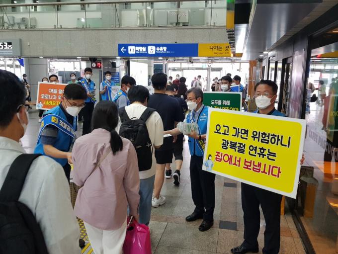 À̵éÀº Å͹̳ΰú ¿ª ÀÌ¿ëÀÚ¸¦ ´ë»óÀ¸·Î ±¤º¹Àý ¿¬ÈÞ À̵¿ ÀÚÁ¦ ¹× ¸¶½ºÅ© Âø¿ë µîÀ» È£¼ÒÇϰí, ¹æ¿ªÈ«º¸¹°°ú ¸¶½ºÅ© µîÀ» ¹èºÎÇß´Ù. ¶ÇÇÑ À̳¯ ¸ñÆ÷¿ª¿¡ ¼³Ä¡ÇÑ ¼±º°Áø·á¼Ò ¿î¿µ »óȲµµ »ìÆñ´Ù.