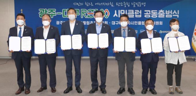 À̿뼷 ½ÃÀåÀº 23ÀÏ ½Ãû ÁßȸÀǽǿ¡¼ ¿¸° ¡®±¤ÁÖ-´ë±¸ RE100 ½Ã¹ÎŬ·´ °øµ¿Ãâ¹ü½Ä¡¯¿¡ Âü¼®ÇØ ½Ã¹ÎµéÀÇ ÀÚ¹ßÀûÀÎ RE100 Âü¿©È°µ¿À» °Ý·ÁÇϰí ź¼ÒÁ߸³, ¿¡³ÊÁö ÀÚ¸³À» ´Þ¼ºÇϱâ À§ÇØ ¹Î‧°üÀÌ ÇÔ²² ³ë·ÂÇÒ °ÍÀ» ¼¾àÇß´Ù.
