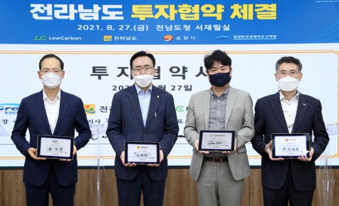 À̳¯ Àü³²µµÃ» ¼ÀçÇʽǿ¡¼ ¿¸° Çù¾à½Ä¿¡´Â À±º´Å Àü³²µµ Á¤¹«ºÎÁö»ç, ÀÌö ·Î¿ìÄ«º» ´ëÇ¥ÀÌ»ç, ÀÓ俵 ¼øÃµºÎ½ÃÀå, ¼Û»ó¶ô ±¤¾ç¸¸±Ç°æÁ¦ÀÚÀ¯±¸¿ªÃ»ÀåÀÌ Âü¼®Çß´Ù.