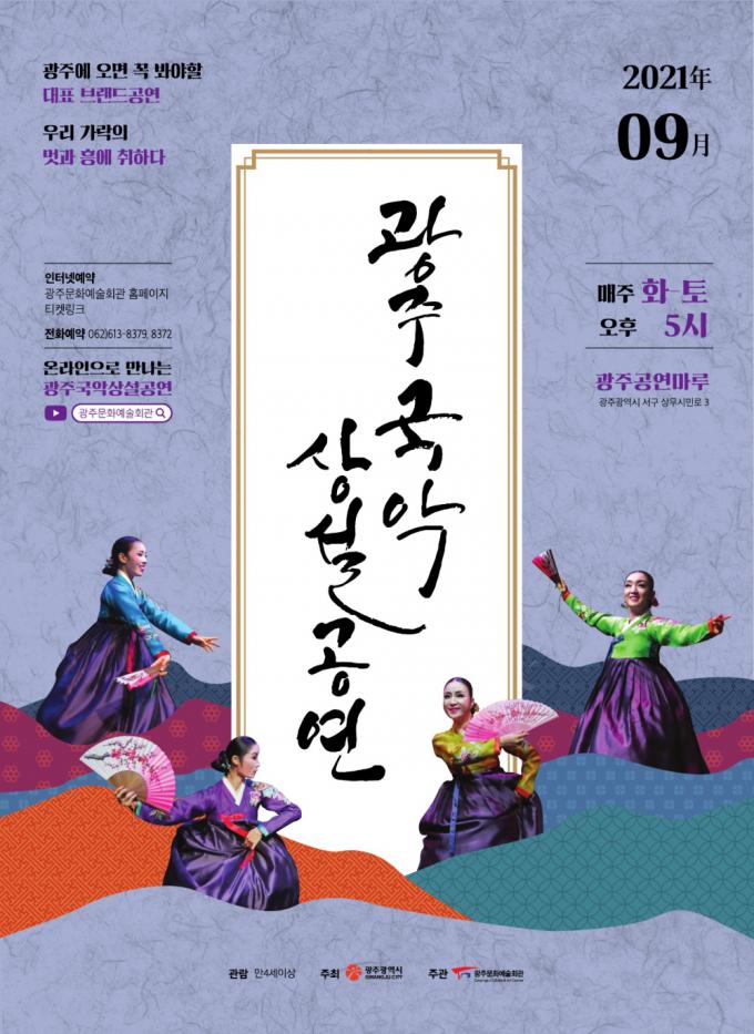 ±¤Áֽø³±¹¾Ç°üÇö¾Ç´ÜÀº 3ÀÏ, 11ÀÏ, 17ÀÏ µî 3ȸ¿¡ °ÉÃÄ ÇØ±ÝÁßÁÖ°î, ´ë±Ý¡¤°¡¾ß±Ý 2ÁßÁÖ, °üÇö¾Ç&¿¬Èñ ¡®ÆÇ³îÀ½¡¯ µî ¾Æ¸§´Ù¿î ±¹¾Ç ¼±À²À» Àü´ÞÇÏ´Â ¸íǰ ¹«´ë¸¦ ²Ù¹Î´Ù.