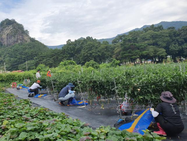 30ÀÏ¿¡´Â ±º ³ó¾÷Á¤Ã¥°ú¿Í °ü±¤°ú, ÁÖõ¸é Á÷¿ø 20¿© ¸íÀÌ ÀϼպÎÁ·À¸·Î ¾î·Á¿òÀ» °Þ°í ÀÖ´Â ÁÖõ¸é ¾ÈÁ¤¸¶À» °íÃß¹çÀ» ã¾Æ ¼öÈ®ÀÛ¾÷À» ÇÔ²² Çß´Ù. ÇØ´ç ³ó°¡´Â ¡°°íÃß ¼öÈ®À» ¾ÕµÎ°í ¿¬ÀÏ Áö¼ÓµÇ´Â °¡À»À帶¿Í Äڷγª19 »çÅ·Π¾Ö¸¦ Å¿ì°í ÀÖ¾ú´Âµ¥, Áø¾È±º Á÷¿øµéÀÌ ÈûÀ» º¸ÅÂÁÖ¾î Àû±â ¼öÈ®¿¡ Å« µµ¿òÀÌ µÇ¾ú´Ù¡±¸ç °¨»çÀÇ ¶æÀ» ÀüÇß´Ù.