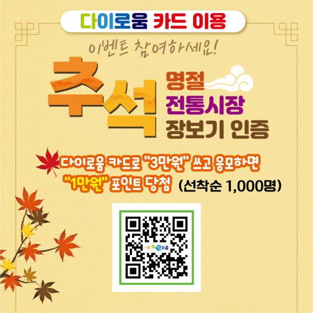 À̺¥Æ® Âü¿©ÀÚ´Â ÀÎÀû»çÇ×(¼º¸í, »ý³â¿ùÀÏ, º»ÀθíÀÇ ÇÚµåÆù ¹øÈ£)À» ±âÀçÇϰí ÀüÅë½ÃÀå¿¡¼ 3¸¸¿ø ÀÌ»ó ´ÙÀ̷οò °áÁ¦ÇÑ Ä«µå ¿µ¼öÁõ(¼Ò¾× ÇÕ»ê °¡´É)°ú ¹°Ç°±¸ÀÔ, ½Ä´ç À½½Ä»çÁø µî ÀÎÁõ»çÁøÀ» ÇÔ²² Á¦ÃâÇÏ¸é µÈ´Ù.