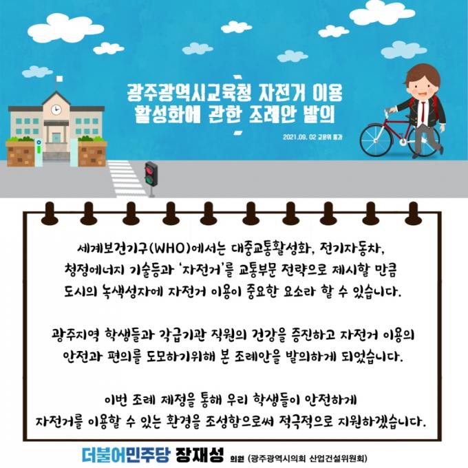 ÀåÀ缺 ÀÇ¿øÀº ¡°±¤ÁÖÁö¿ª Çлýµé°ú °¢±Þ±â°ü Á÷¿øÀÇ °Ç°À» ÁõÁøÇϰí ÀÚÀü°Å ÀÌ¿ëÀÇ ¾ÈÀü°ú ÆíÀǸ¦ µµ¸ðÇϱâ À§ÇØ º» Á¶·Ê¾ÈÀ» ¹ßÀÇÇß´Ù¡±°í Á¦Á¤ ÃëÁö¸¦ ¼³¸íÇß´Ù.