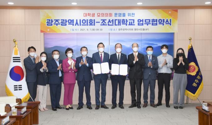 À̳¯ ¾÷¹«Çù¾à ü°á¿¡ µû¶ó ±¤ÁÖ±¤¿ª½ÃÀÇȸ´Â ¡®º»È¸ÀÇÀå¿¡¼ ¸ðÀÇÀÇȸ °³ÃÖ¡¯, ¡®¿ì¼ö Âü°¡ÀÚ ÀÇÀå»ó ǥ⡯ µî ¸ðÀÇÀÇȸ ¿î¿µ¿¡ ÇÊ¿äÇÑ ÇàÁ¤Àû Áö¿øÀ» Á¦°øÇϰí, Á¶¼±´ëÇб³´Â ¡®Çлýµé¿¡°Ô ½ÃÀÇȸ üÇè ±âȸ Á¦°ø¡¯, ¡®¸ðÀÇÀÇȸ ¾È°Ç ¹ß±¼ ¹× °øÀ¯¡¯ µî ¸ðÀÇÀÇȸ ÁøÇà Àü¹ÝÀ» ÃѰýÇÏ°Ô µÈ´Ù.