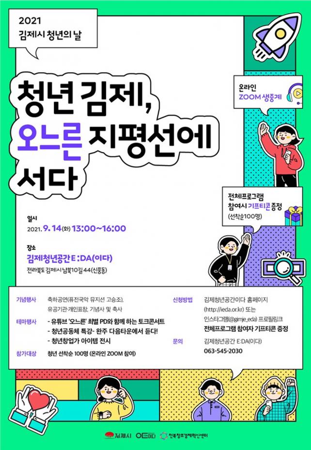 ÇÑÆí, 14ÀÏ ¿ÀÈÄ 7½ÃºÎÅÍ ¿ÀÈÄ 9½Ã±îÁö ±èÁ¦¹®È¿¹¼úȸ°ü ´ë°ø¿¬Àå¿¡¼ ¡®ÀüºÏû³â°ú ÇÔ²² ÇÏ´Â Á¦1ȸ ±èÁ¦½Ã û³â °¡¿äÁ¦¡¯µµ °³ÃÖ, û³âµé°ú ÇÔ²² ÇÏ´Â ¼ÒÅë ¹× ÀçÃæÀüÀÇ ÀåÀ» ¸¶·ÃÇÒ °èȹÀÌ´Ù.